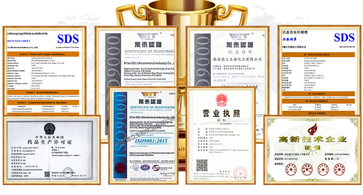 Кси’ан Дели Биоцхемицал Индустри Цо., Лтд. је високотехнолошко предузеће специјализовано за истраживање и развој, производња и продаја циклодекстрина и њихових деривата. Ми снабдевамо фармацеутске ексципијенте купцима широм света са стабилним квалитетом и поузданом услугом.