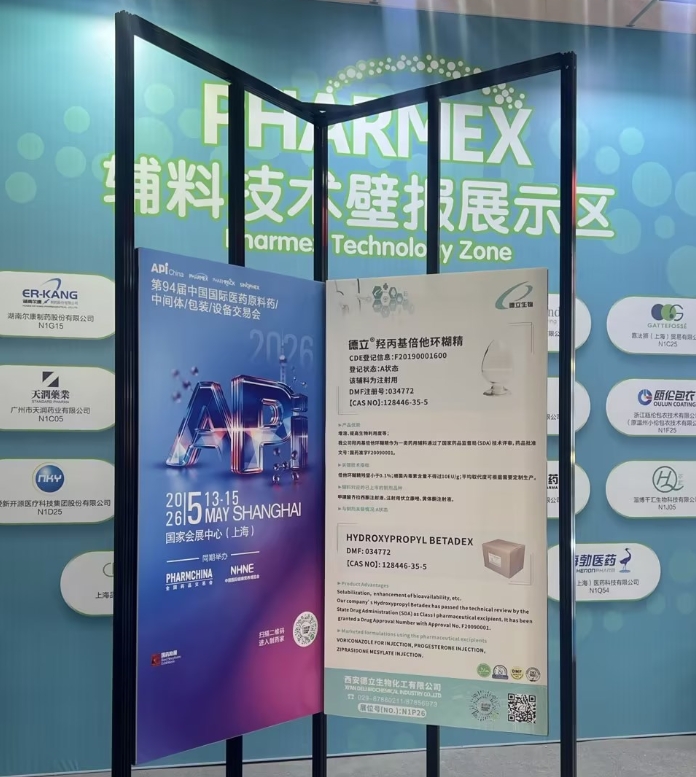 Кси'ан Дели Биоцхемицал Индустри Цо., Лтд. учествовао је на изложби АПИ Кине 2025. одржаној у Чонгкингу, на којој су представљени водећи производи компаније—хидроксипропил бетадек (ХПБЦД)иБетадек сулфобутил етар натријум (СБЕЦД)— професионалцима из глобалне фармацеутске и хемијске индустрије.
