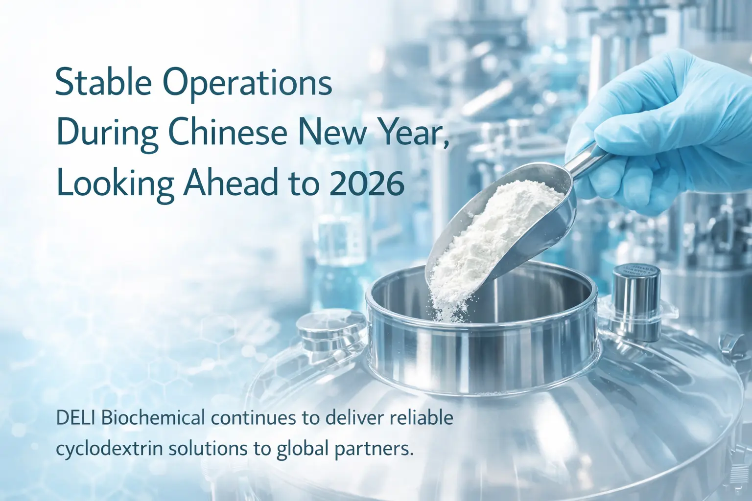 Са више од 26 година искуства у производњи циклодекстрина, ДЕЛИ Биоцхемицал је специјализован за хидроксипропил бетадек и бетадек сулфобутил етар натријум, који се широко користе у фармацеутским формулацијама, ињекцијама, ветеринарским производима и финим хемијским апликацијама. Током периода празника, компанија је применила добро структурисане распореде дужности и строге безбедносне протоколе, обезбеђујући да кључни производни процеси и испорука поруџбина напредују несметано.